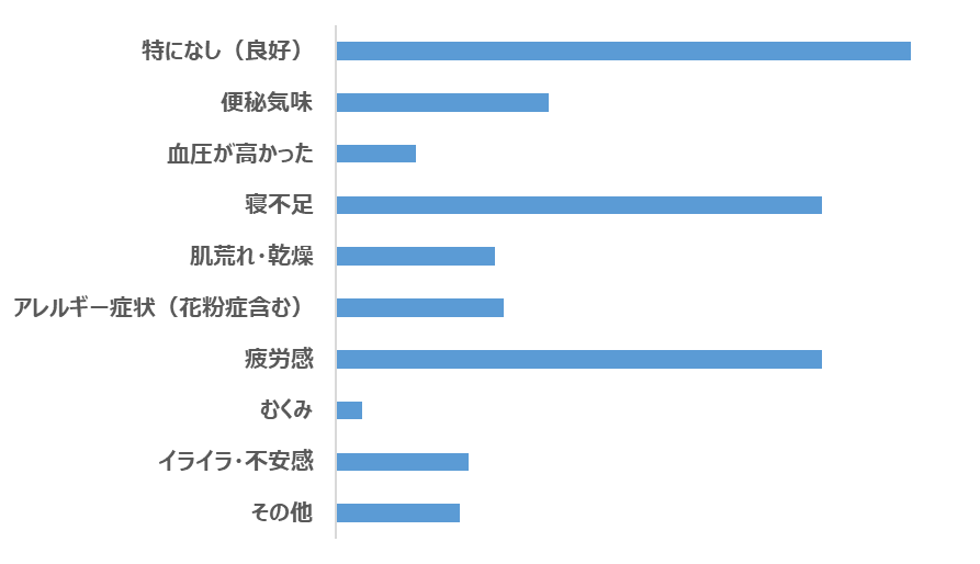 特になし(良好)が最も多かったです!次いで「寝不足」「疲労感」となりました。
