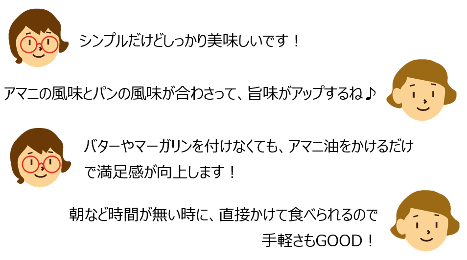 理由:シンプルな食パンが一番アマニの風味を感じられて美味しく食べられるから。