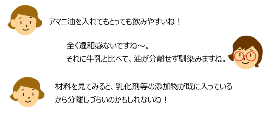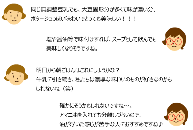 さて、スタッフ2人が選んだアマニ油と最も相性の良い豆乳は・・・!?
