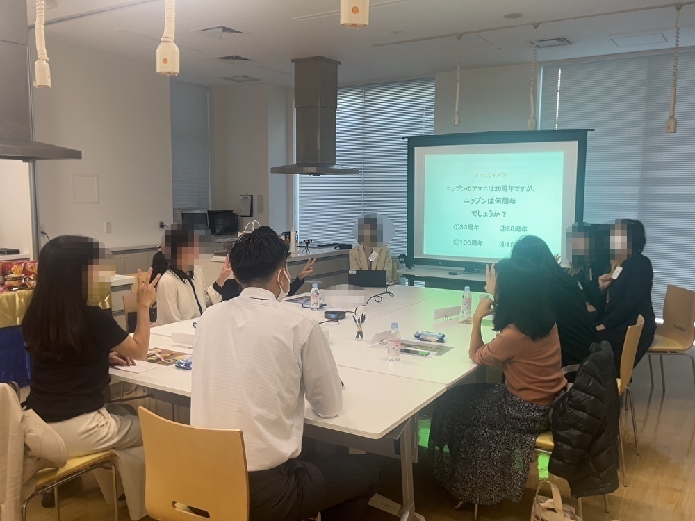 既に和やかな雰囲気でしたが、まずは緊張をほぐすために自己紹介+ニップン&アマニクイズ!