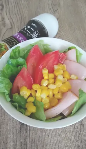 サラダにアマニ油ドレッシングと、基本中の基本!ですが